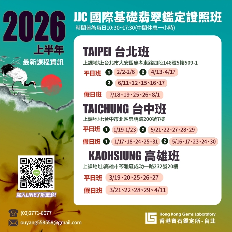 2026年JJC國際翡翠鑑定證照班 課表最新出爐!
